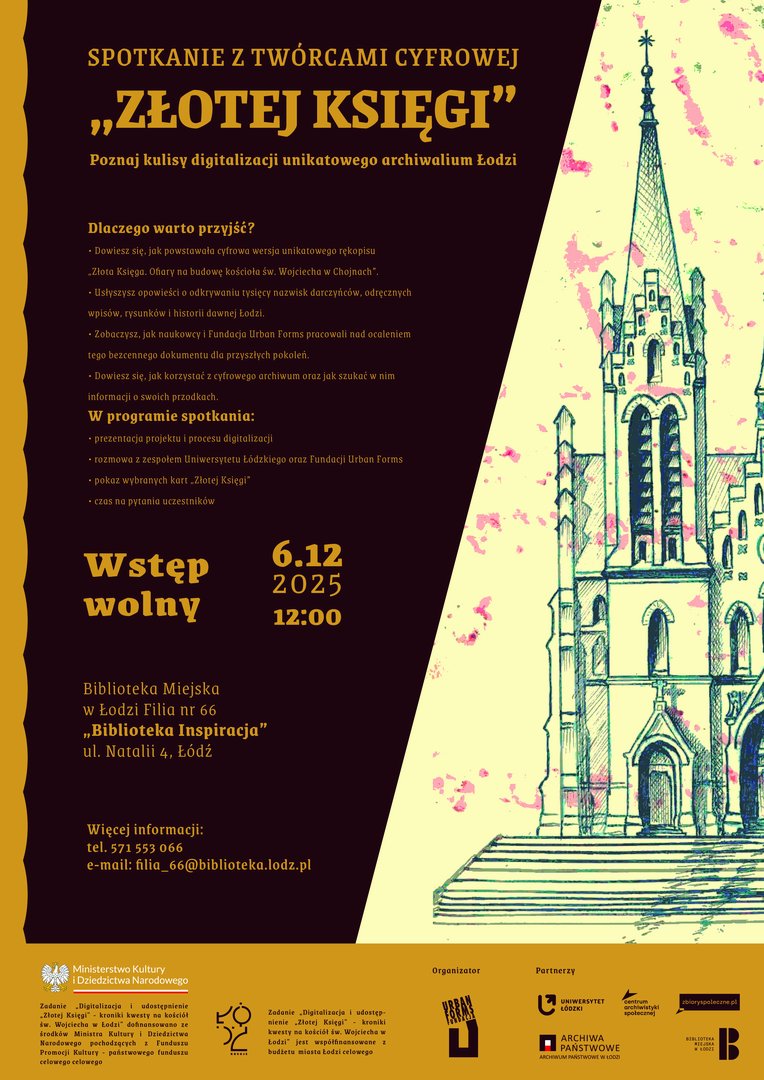 Zespół badaczy i studentów z Wydziału Filozoficzno-Historycznego, we współpracy z Fundacją Urban Forms, kończy prace nad digitalizacją Złotej Księgi ofiarodawców na rzecz budowy kościoła św. Wojciecha w Chojnach. Już w grudniu odbędą się dwa spotkania prezentujące efekty projektu. To wyjątkowa okazja, by poznać unikatowe źródło dotyczące historii międzywojennej Łodzi.